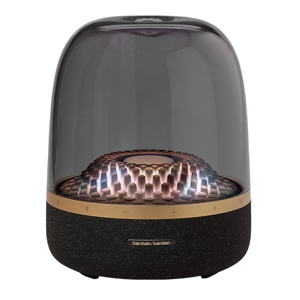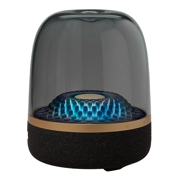 Harman Kardon همیشه به ترکیب زیبایی و عملکرد معروف بوده و Aura Studio 4 نمونهی کامل این فلسفه است. گنبد شفاف این اسپیکر نه تنها طراحی آن را چشمگیر کرده بلکه به بازتاب بهتر صدا نیز کمک میکند.